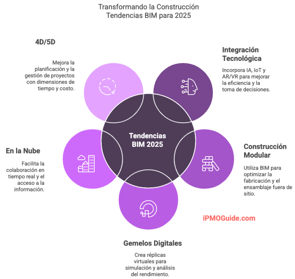 A continuación se muestran algunas tendencias clave de BIM (Building Information Modeling) es una Metodología que ha revolucionado la industria de la construcción, Tendencias BIM para este 2025.