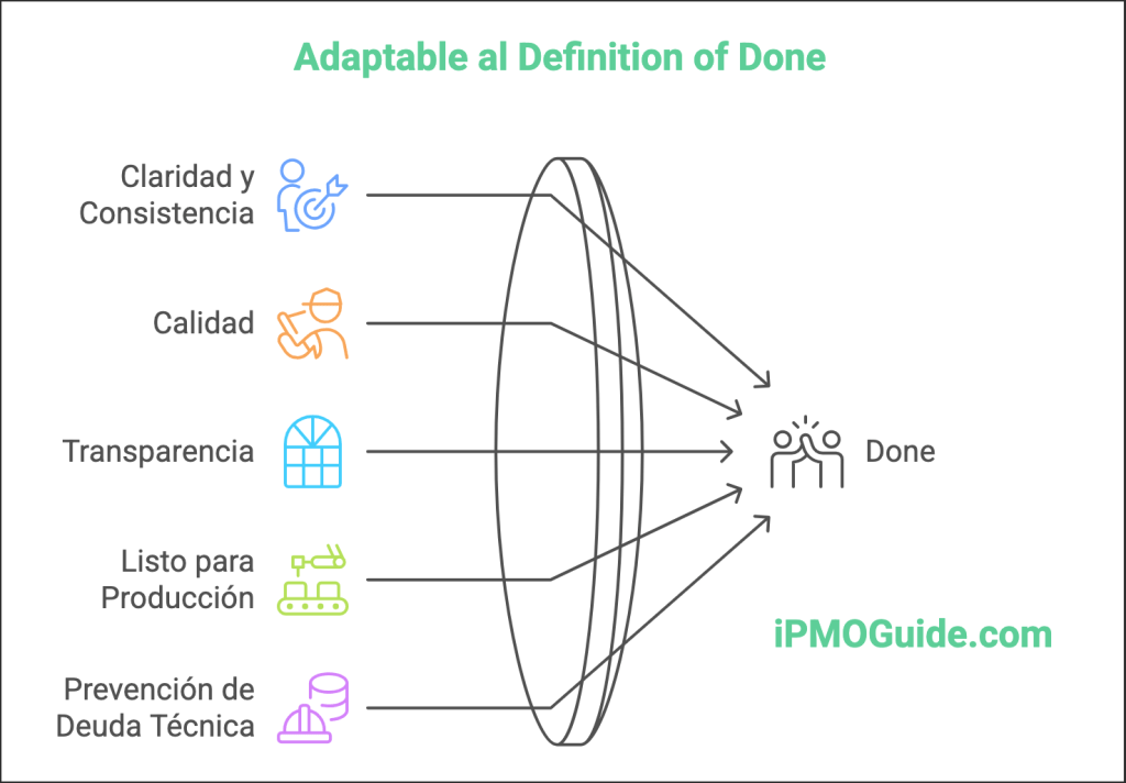 - Claridad y Consistencia: Todos los miembros del equipo tienen una comprensión clara y compartida de lo que significa que un trabajo esté terminado.