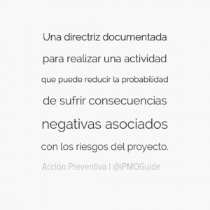 Una directriz documentada para realizar una actividad que puede reducir la probabilidad de sufrir consecuencias negativas asociados con los riesgos del proyecto.