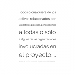 Todos o cualquiera de los activos relacionados con los distintos procesos, pertenecientes a todas o sólo a alguna de las organizaciones involucradas en el proyecto, que se utilizan o podrían utilizarse para lograr un influencia sobre el éxito del proyecto.