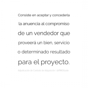 Consiste en aceptar y concederla la anuencia al compromiso de un vendedor que proveerá un bien, servicio o determinado resultado para el proyecto.