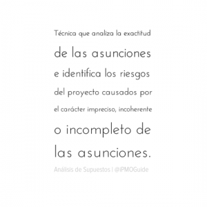 Técnica que analiza la exactitud de las asunciones e identifica los riesgos del proyecto causados por el carácter impreciso, incoherente o incompleto de las asunciones.