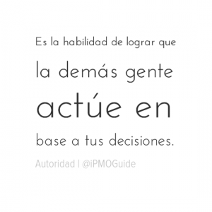 Es la habilidad de lograr que la demás gente actúe en base a tus decisiones. La autoridad se basa generalmente en la percepción de que una persona ha sido oficialmente autorizado para emitir ordenes (obligatorias).
