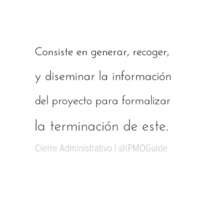 Consiste en generar, recoger, y diseminar la información del proyecto para formalizar la terminación de este.