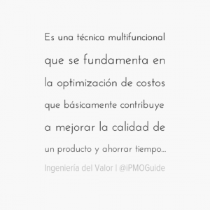 Es una técnica multifuncional que se fundamenta en la optimización de costos que básicamente contribuye a mejorar la calidad de un producto y ahorrar tiempo, mediante una utilización más eficiente de los recursos.
