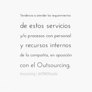 Tendencia a atender los requerimientos de estos servicios y/o procesos con personal y recursos internos de la compañía, en oposición con el Outsourcing.