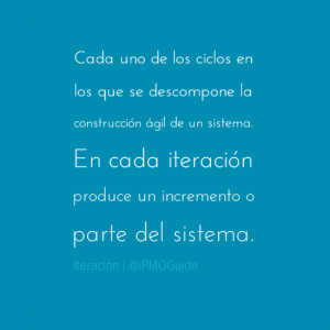 En Scrum: Cada uno de los ciclos en los que se descompone la construcción ágil de un sistema. En cada iteración produce un incremento o parte del sistema.