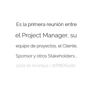 Es la primera reunión entre el Project Manager, su equipo de proyectos, el Cliente, Sponsor y otros Stakeholders, la cual tiene como objetivo dar el inicio oficial de un Proyecto.