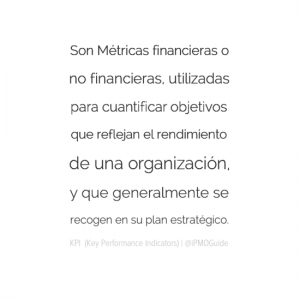 Key Performance Indicators, Indicadores Claves de Desempeño, Son Métricas financieras o no financieras, utilizadas para cuantificar objetivos que reflejan el rendimiento de una organización, y que generalmente se recogen en su plan estratégico.