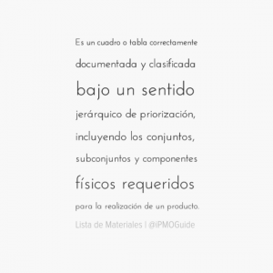 Es un cuadro o tabla correctamente documentada y clasificada bajo un sentido jerárquico de priorización, incluyendo los conjuntos, subconjuntos y componentes físicos requeridos para la realización de un producto.