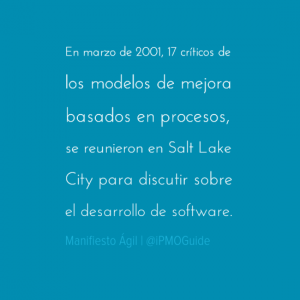 En marzo de 2001, 17 críticos de los modelos de mejora basados en procesos, convocados por Kent Beck, que había publicado un par de años antes el libro «Extreme Programming Explained» en el que exponía una nueva metodología denominada Extreme Programming, se reunieron en Salt Lake City para discutir sobre el desarrollo de software.