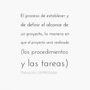 El proceso de establecer y de definir el alcance de un proyecto, la manera en que el proyecto será realizado (los procedimientos y las tareas), los papeles y las responsabilidades, el tiempo y las valoraciones de costos.
