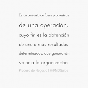 Es un conjunto de fases progresivas de una operación, cuyo fin es la obtención de uno o más resultados determinados, que generarán valor a la organización.
