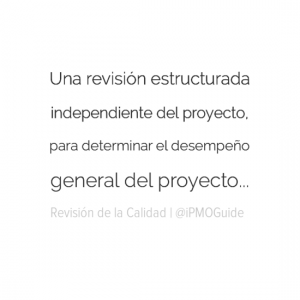 Una revisión estructurada independiente del proyecto, para determinar el desempeño general del proyecto (por ejemplo, comparado con la programación y el presupuesto) y la conformidad del proyecto (es decir, con los procesos de gestión especificados para el proyecto).
