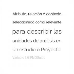 Atributo, relación o contexto seleccionado como relevante para describir las unidades de análisis en un estudio o Proyecto.