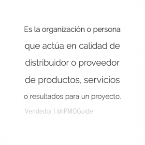 Es la organización o persona que actúa en calidad de distribuidor o proveedor de productos, servicios o resultados para un proyecto.