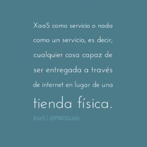 XaaS como servicio o nada como un servicio, es decir, cualquier cosa capaz de ser entregada a través de internet en lugar de una tienda física. IaaS, PaaS y SaaS son las formas más comunes de XaaS, pero también se incluirían otros modelos de negocio como BAAS, CaaS o NaaS.