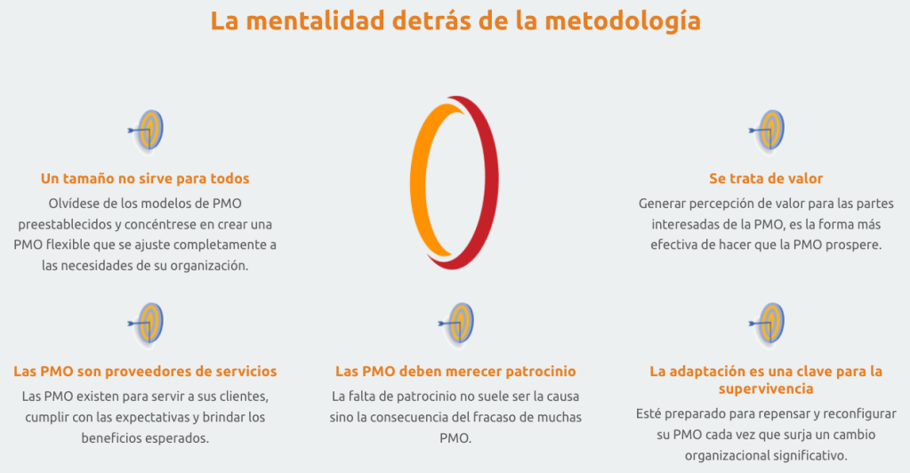 La Metodología proporciona un paso a paso estructurado para establecer nuevas PMO o evaluar y rediseñar PMO existentes.